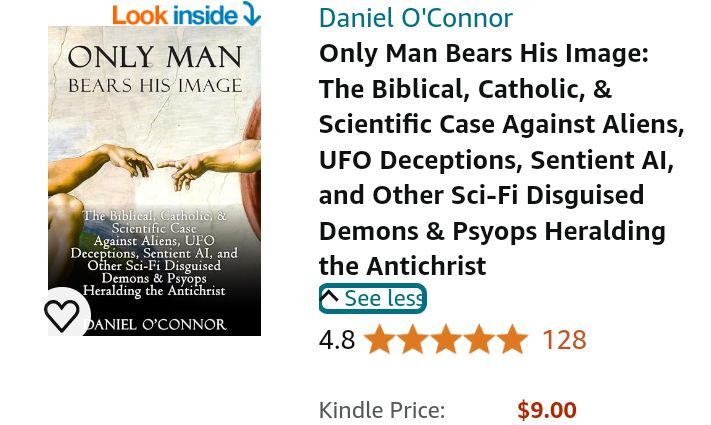 Those who read it will be prepared to contend against the principalities, powers, and rules “of this present darkness, against the spiritual host of wickedness in the heavenly places.” (Ephesians 6:12) They will be equipped with Scripture, the Magisterium, science, and more, to understand—and help others understand—that we can be certain there are no aliens (only demonic illusions pretending to be aliens), that AI cannot ever become sentient or rational, and that other related sci-fi-originated proposals are likewise deceptions constituting the “return to myths” that Scripture prophesies for our times.