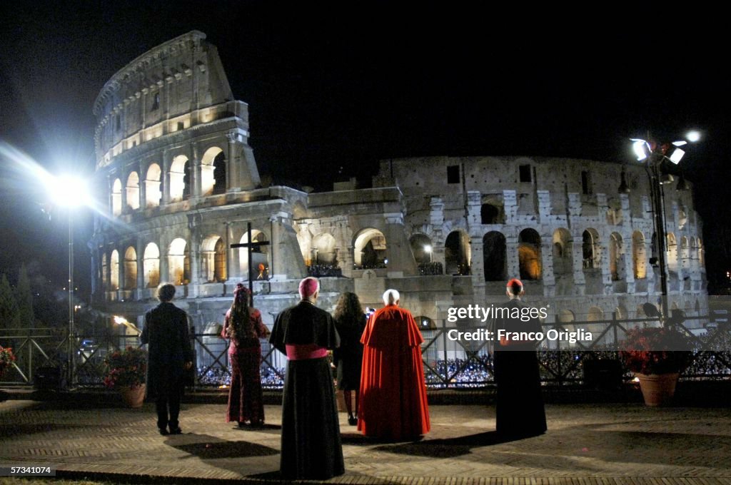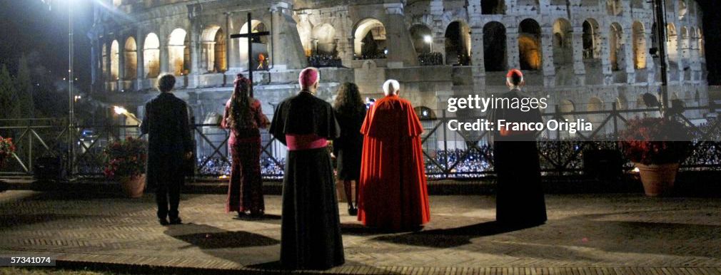 Cardinal Joseph Ratzinger on Good Friday 2005. The Coliseum: